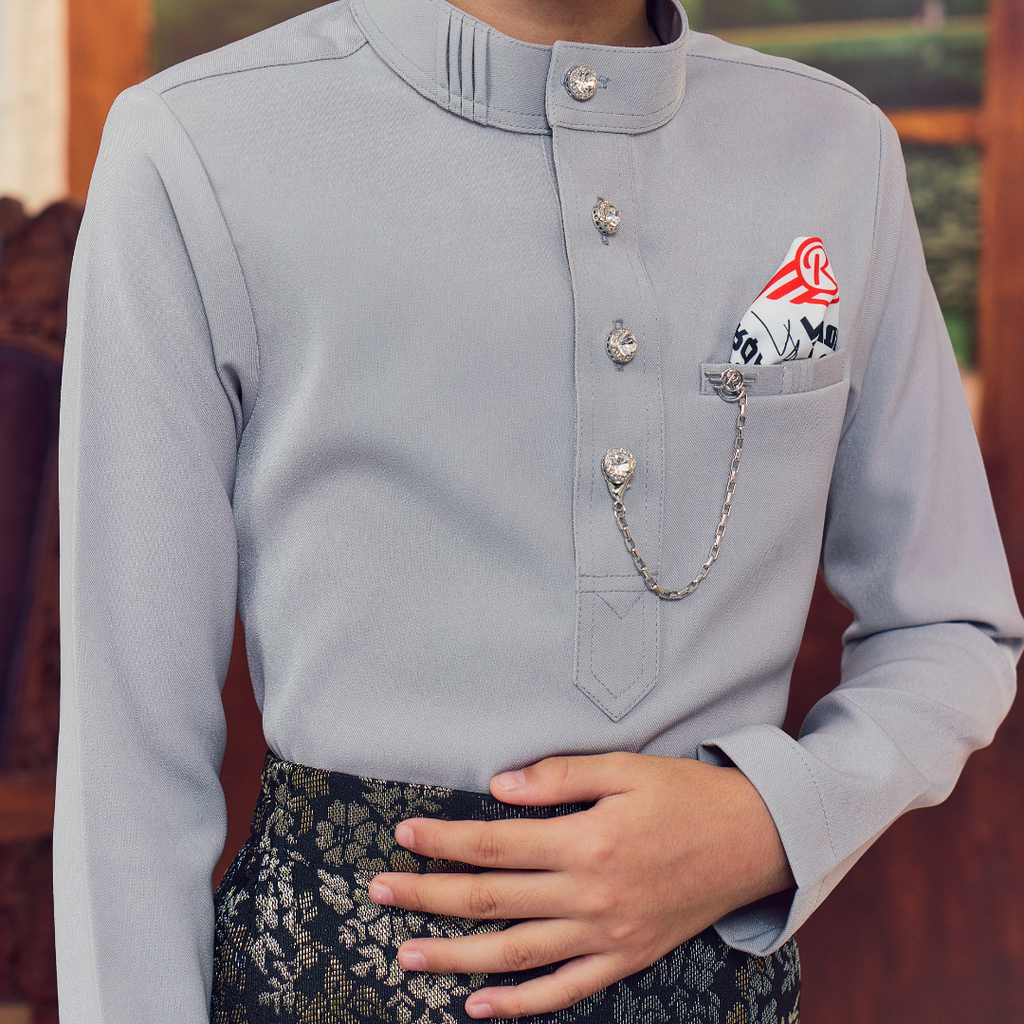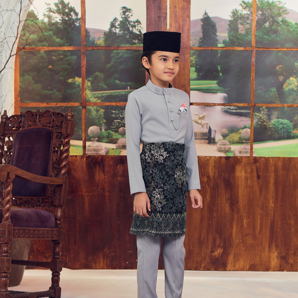 (PRE-ORDER) BAJU MELAYU D'MAHKOTA | LIGHT GREY | KIDS EDITION
